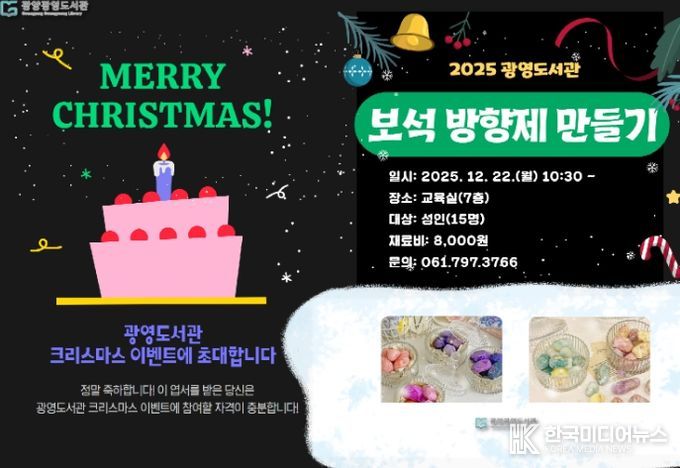 [ 한국미디어뉴스 이종철 기자 ] 광양광영도서관은 도서관 이용 활성화와 시민들의 문화 향유 기회 확대를 위해 12월 1일부터 28일까지 ‘2025 크리스마스 특별 행사’를 운영한다고 밝혔다.