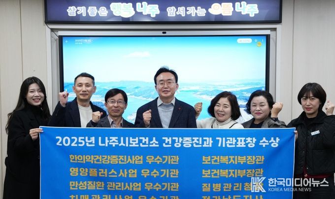 [ 한국미디어뉴스 이종철 기자 ] 전라남도 나주시는 2025년 한 해 동안 추진한 건강증진 정책의 전 분야에서 탁월한 성과를 인정받으며 영양, 한의약, 지역사회 건강증진, 정신건강, 치매관리 등 총 5개 기관표창을 잇달아 수상했다고 4일 밝혔다.