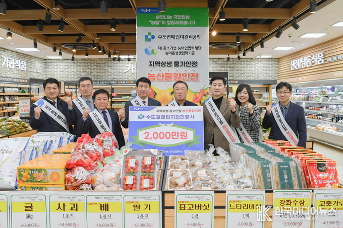 [ 한국미디어뉴스 이원영 기자 ] 기후에너지환경부(장관 김성환) 산하 수도권매립지관리공사(사장 송병억)는 지역 농산물 소비 촉진과 매립지 영향권 주민의 생활비 부담 완화를 위해 12월 10일부터 인천 검단 농협 하나로마트에서 ‘지역농산물 상생마케팅 할인전’을 진행한다고 밝혔다.