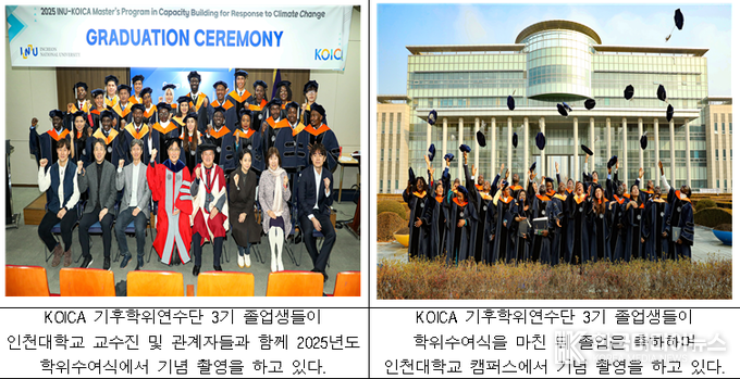[ 한국미디어뉴스 이원영 기자 ] 2025년 12월 11일, 인천대학교 KOICA 기후학위연수단(단장 이희관 인천대 교수) 3기 석사과정이 성공적으로 종료되었다. 이번 과정에서는 가나, 우간다, 탄자니아, 인도네시아 등 16개국에서 온 총 25명의 연수생들이 석사 학위를 취득하였고 글로벌 기후변화 대응을 위한 전문 인력으로 거듭났다.