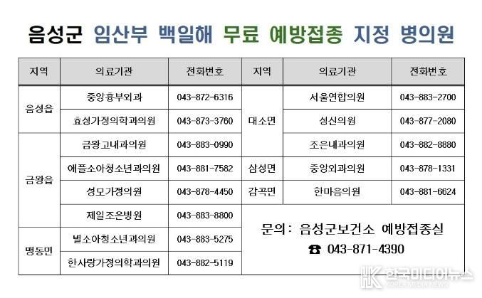 [ 한국미디어뉴스 이원영 기자 ] 음성군이 군민의 감염병 예방과 건강 증진을 위해 무료 예방접종 지원을 한층 강화하고 있다.