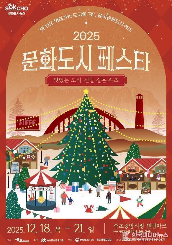 [ 한국미디어뉴스 이원영 기자 ] (재)속초문화관광재단은 속초시의 대한민국 문화도시 1년 차 사업을 마무리하며 오는 12월 18일부터 21일까지 4일간 속초중앙시장 센텀마크(구 롯데시네마) 에서 대한민국 문화도시 성과공유회‘2025 문화도시 페스타’를 개최한다.