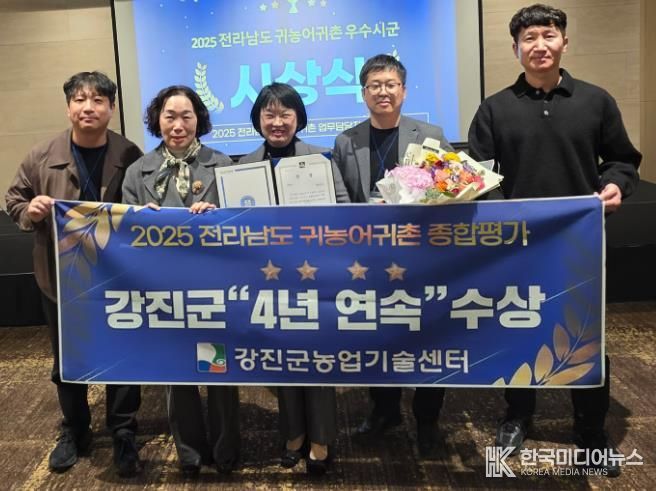 [ 한국미디어뉴스 이원영 기자 ] 강진군이 ‘2025 전라남도 귀농어귀촌 종합평가’에서 4년 연속 우수 지자체로 선정되며 지방소멸 위기 극복과 귀농정책의 선도 모델로 주목받고 있다.