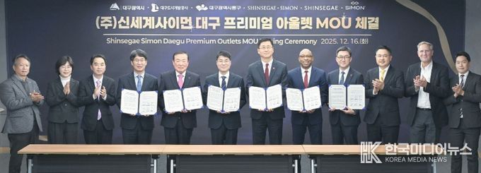 [ 한국미디어뉴스 이원영 기자 ] 대구 동구청은 지난 16일 대구시 산격청사 대회의실에서 ‘신세계사이먼 프리미엄 아울렛’ 조성을 위한 업무협약(MOU)을 체결했다.