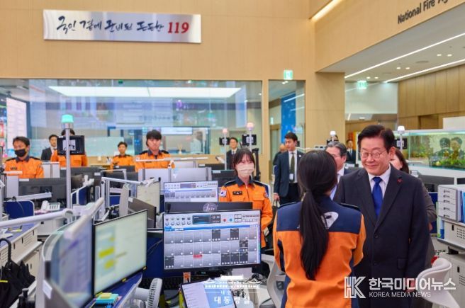 이 대통령은 먼저 소방청 119 종합상황실을 방문해 긴급 신고 접수와 출동 지휘 등 대응 현장을 직접 살폈다. 이어 중앙119 구급 상황 관리센터와 119 항공 운항 관제실에서 국민의 생명과 안전을 지키는 소방대원들의 노고를 치하했다.