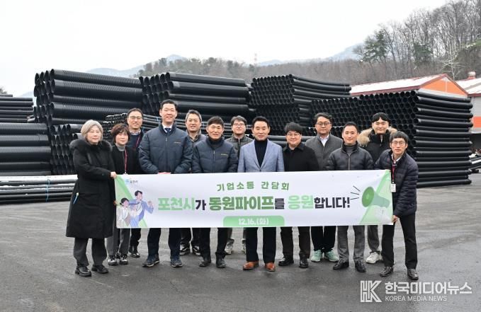 [ 한국미디어뉴스 김서안 기자 ] 포천시는 지난 16일 기업 경영 애로를 청취하고 현장의 의견을 수렴하기 위해 신북면에 위치한 동원파이프를 방문했다.