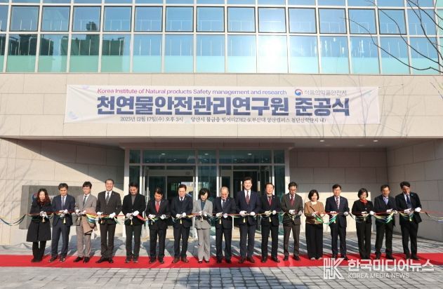 [ 한국미디어뉴스 이원영 기자 ] 식품의약품안전처와 양산시는 2025년 12월 17일 수요일 오후 3시, 부산대학교 양산캠퍼스 첨단산학단지 내에 위치한 '천연물 안전관리연구원'에서 준공식을 개최했다. 이날 행사에는 식품의약품안전처, 경상남도, 양산시, 부산대학교를 비롯한 관계기관 및 국회·지역의원, 연구원 준공 관련 유공자 등 약 100여 명이 참석하여 연구원 준공을 함께 축하했다.