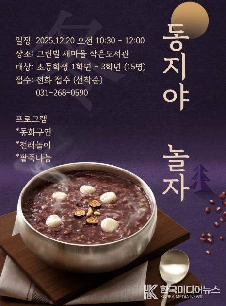 이번 행사는 오는 20일 오전 10시 30분부터 12시까지 도서관에서 진행되며, △동화구연 △작은음악회 △전래놀이 △팥죽나눔 등 다양한 프로그램이 마련됐다.