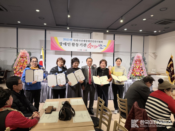 [ 한국미디어뉴스 양선희 기자 ] 사단법인 한국산재장애인 인천시협회 활동지원센터(센터장 정천용)는 18일 인천그랜드하우스에서 한 해를 마무리하는 2025년 활동지원센터 송년회를 개최했다.
