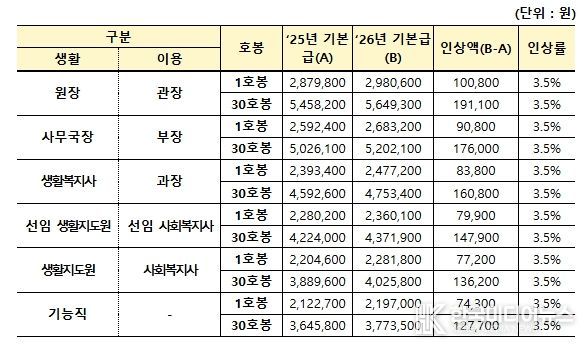 이는 예년의 1%p 안팎이던 상승분을 약 2배가량 높인 수치로, 사회복지시설 종사자 처우개선에 대한 정부의 의지가 반영된 결과이다. 처우개선 실현을 위해 '26년 10종 국고지원시설 예산은 전년보다 7.6% 인상된 9,812억원이 편성됐다.