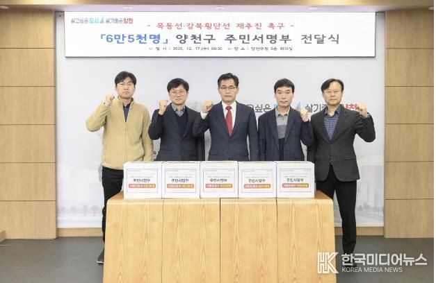 [ 한국미디어뉴스 이보영 기자 ] 양천구는 ‘목동선 및 강북횡단선 재추진 촉구’ 주민 서명운동을 완료하고, 6만 5천 명의 서명부를 모아 지난 17일 전달식을 개최하며 본격적인 대외 건의 활동에 나선다고 밝혔다.
