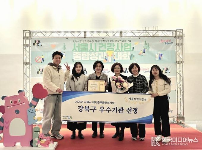 [ 한국미디어뉴스 이원영 기자 ] 서울 강북구는 지난 15일 열린 서울시 주관 ‘2025년 대사증후군 관리사업’ 평가에서 우수기관으로 선정돼 서울시장상을 수상했다고 22일 밝혔다.