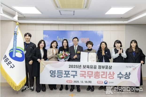 [ 한국미디어뉴스 이원영 기자 ] 영등포구가 교육부 주관 ‘2025년 보육유공 정부포상’ 에서 지자체 부문 국무총리 표창을 수상했다고 밝혔다. 보육 분야에서 정부포상을 받은 것은 이번이 처음으로, 구가 추진해온 보육정책 전반이 국가 차원에서 공식 인정받았다는 점에서 의미가 있다.