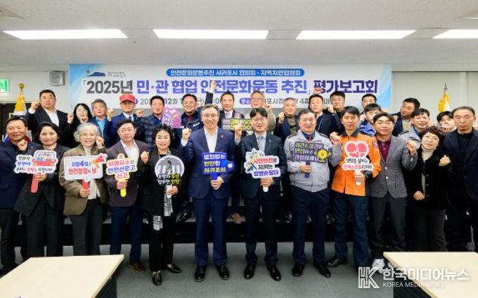 [ 한국미디어뉴스 이원영 기자 ] 서귀포시는 12월 19일 10시 시청 별관 4층 별넷마당에서 오순문 서귀포시장을 비롯해 교육지원청‧경찰서‧자치경찰단‧소방서‧해양경찰서 등 유관기관장과 오창훈 시 주민자치위원회협의회장, 시민사회단체장 등 안전문화운동추진 서귀포시협의회 위원 30여 명이 참석한 가운데 ‘2025년도 민‧관협업 안전문화운동 추진 평가보고회’를 개최했다.