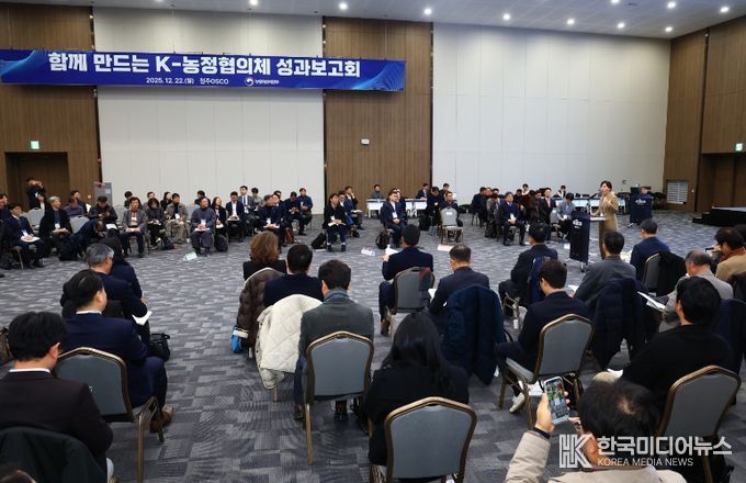 [ 한국미디어뉴스 이원영 기자 ] 농림축산식품부는 12월 22일 오후 청주오스코(OSCO)에서 '함께 만드는 K-농정협의체' 성과보고회를 개최했다. 이번 행사에는 K-농정협의체 공동대표인 송미령 농식품부 장관과 류진호 한국4-H청년농업인연합회 회장을 비롯한 협의체 위원 120여 명과 농어업농어촌특별위원회 김호 위원장을 포함한 관계자 30여 명 등 총 150여 명이 참석했다.