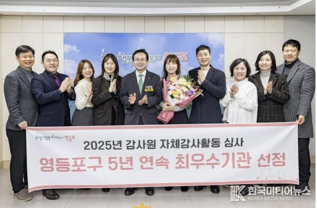 [ 한국미디어뉴스 이원영 기자 ] 영등포구가 감사원 주관 ‘2025년 자체 감사활동 심사’에서 최고 등급인 A등급을 받아 ‘5년 연속’ 최우수기관으로 선정되며 감사원 기관 표창을 수상했다고 밝혔다. 이는 전국 지방자치단체 가운데 유일한 사례로, 구의 체계적이고 선도적인 자체 감사 운영 역량을 다시 한번 입증했다.