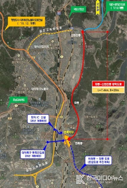 [ 한국미디어뉴스 이원영 기자 ] 대전시는 대덕구 연축동~신탄진 용정초교를 잇는 ‘와동~신탄진동 도로개설사업’이 22일 기획재정부 재정사업평가위원회 심의를 거쳐 예비타당성조사 대상사업으로 선정됐다.
