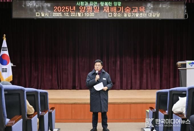 [ 한국미디어뉴스 이원영 기자 ] 고품질 양평밀 생산을 위한 2025년 양평밀 재배기술 교육이 지난 22일 오전 10시부터 12시까지 양평군농업기술센터에서 개최됐다.