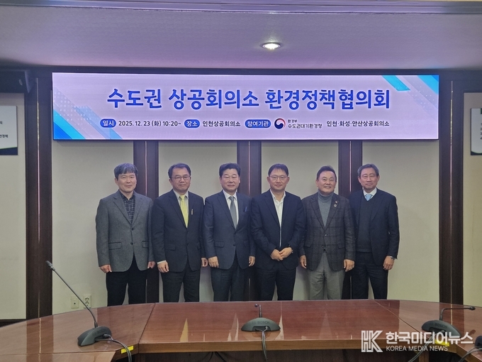 [ 한국미디어뉴스 이원영 기자 ] 기후에너지환경부 소속 수도권대기환경청(청장 이상진)은 12월 23일 인천상공회의소(인천광역시 남동구)에서 인천(상근부회장 이상범), 화성(회장 안상교), 안산(회장직무대리 김철봉) 상공회의소와 “수도권 상공회의소 환경정책협의회”를 개최했다.