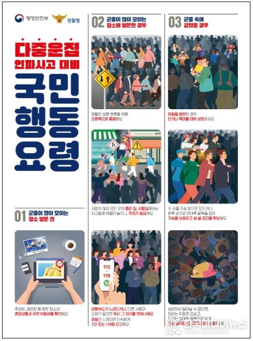 [ 한국미디어뉴스 이원영 기자 ] 행정안전부는 연말연시를 앞두고 주요 번화가와 해넘이·해맞이 명소 등에 많은 인파가 몰릴 것으로 예상됨에 따라, 다중운집 인파 안전관리 대책을 12월 23일 국무회의에 보고했다.