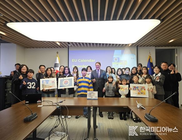[ 한국미디어뉴스 이원영 기자 ] 고성군은 12월 23일 화요일 오후 1시, 서울 중구 서울스퀘어 11층에 위치한 주한 유럽연합(EU) 대표부에서 열린 '2025년 주한 유럽연합 학생 달력 그림 공모전 시상식'에 수상 학생들을 인솔해 참석했다.