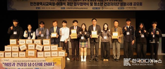 [ 한국미디어뉴스 이원영 기자 ] 인천광역시교육청은 23일 학생교육문화회관에서 ‘2025년 청소년 건강자치단 건강 리더십 교육·성장 사례 공유회’를 열고 사단법인 이태석재단과 업무협약(MOU)을 체결했다.