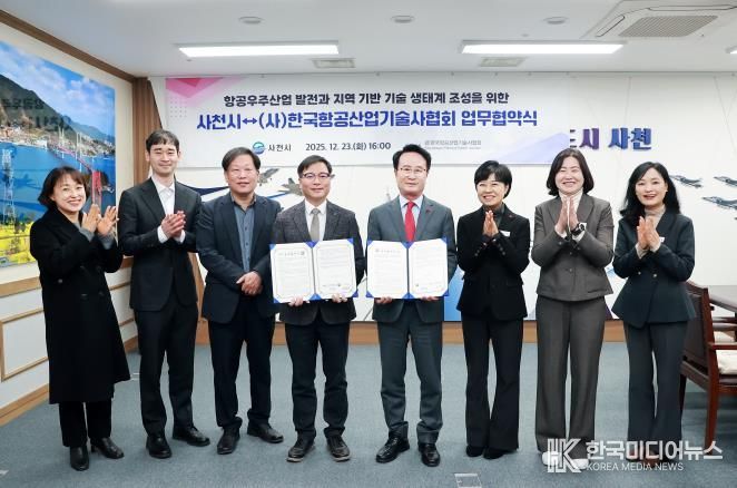 [ 한국미디어뉴스 이원영 기자 ] 사천시는 지난 23일 시청 열린시장실에서 사단법인 한국항공산업기술사협회와 항공우주산업 발전과 지역 기반 기술 생태계 조성을 위한 업무협약(MOU)을 체결했다.