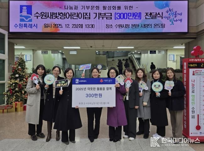 수원새빛형어린이집협의회는 연말을 맞아 회원들의 뜻을 모아 이번 기부를 했다. 성금은 경기도사회복지공동모금회에 기탁돼 도움이 필요한 취약계층 지원에 사용될 예정이다.
