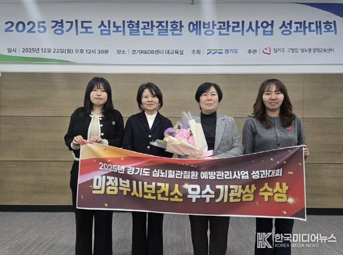 [ 한국미디어뉴스 김서안 기자 ] 의정부시 보건소는 12월 22일 ‘2025년 경기도 심뇌혈관질환 예방관리사업 성과대회’에서 ‘우수 기관’으로 선정돼 경기도지사 표창을 수상했다.