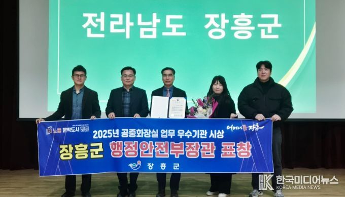 [ 한국미디어뉴스 이종철 기자 ] 장흥군이 공중화장실 관리·운영 업무에 대한 공로를 인정받아 23일 행정안전부로부터 공중화장실 업무 유공 기관표창을 수상했다.