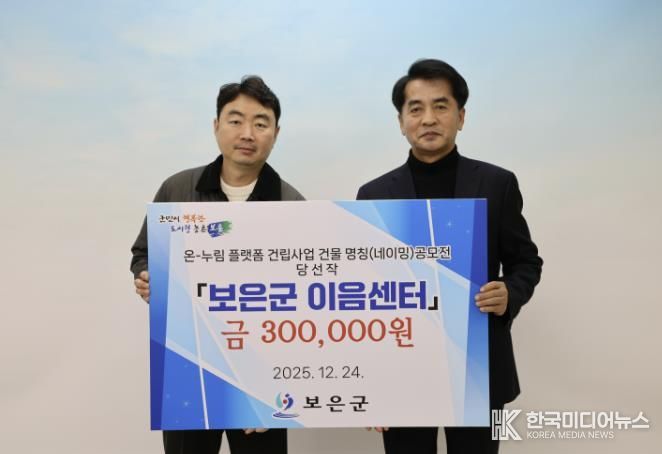 [ 한국미디어뉴스 김풍옥 기자 ] 충북 보은군은 생애주기별 복지서비스 제공을 위한 ‘온-누림 플랫폼(가칭)’의 공식 명칭으로 ‘보은군 이음센터(응모자 박준표)’를 최종 선정하고 24일 시상식을 개최했다.