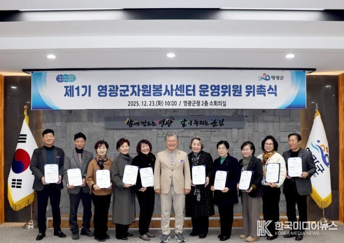 [ 한국미디어뉴스 이종철 기자 ] 영광군은 12월 23일 영광군청 2층 소회의실에서 26년부터 운영될 제1기 영광군자원봉사센터 운영위원회 위원 위촉식을 가졌다고 밝혔다.