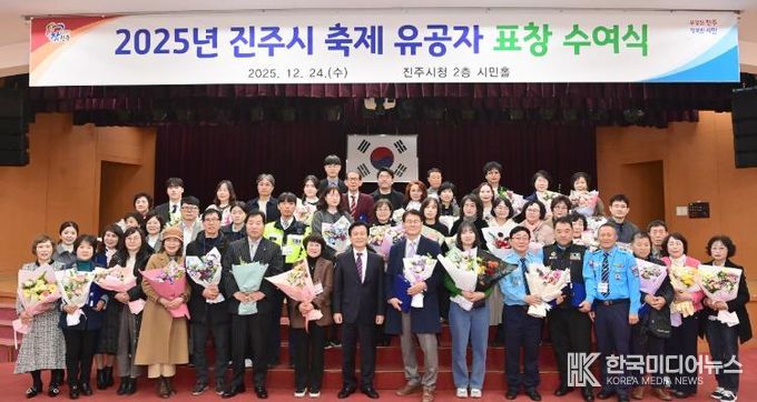 [ 한국미디어뉴스 이원영 기자 ] 진주시는 24일 시청에서 올해 축제의 성공적인 개최에 기여한 유공자들의 노고와 헌신을 기리기 위해 ‘2025년 진주시 축제 유공 표창 수여식’을 개최했다.