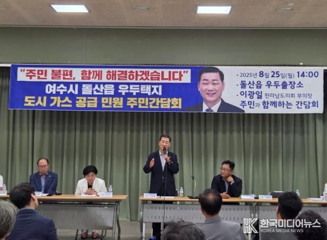 [ 한국미디어뉴스 이종철 기자 ] 이광일 전라남도의회 부의장은 23일 “도시가스는 선택의 문제가 아니라 겨울을 버티기 위한 최소한의 생활 인프라”라며 여수시 도시가스 미공급 지역 문제를 더 이상 방치해서는 안 된다고 강조했다.
