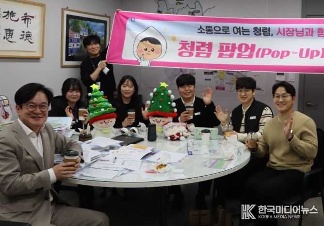 시장실에서 열린 ‘청렴 팝업 카페’에는 김병수 시장과 철도과 직원 5명이 참석해 업무뿐 아니라 공직자로서의 책임과 보람, 시정업무의 AI 활용, 개인적인 꿈에 이르기까지 폭넓게 이야기를 나누며 서로를 이해하는 시간을 가졌다.