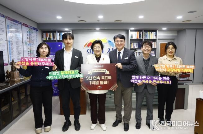 [ 한국미디어뉴스 이보영 기자 ] 이천시는 고향사랑기부제 시행 이후 3년 연속 누적 기부금 1억 원을 돌파하며 제도의 안정적인 정착과 지속적인 성과를 이어가고 있다고 밝혔다.