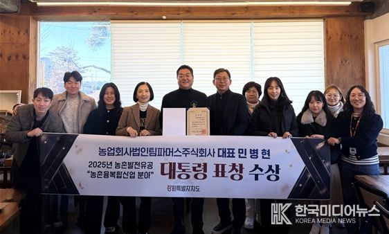 김미숙 강원특별자치도 농정과장은 “현장에서 농촌융복합산업을 통해 새로운 부가가치를 창출해 온 성과가 대통령 표창으로 이어져 뜻깊다”며, “앞으로도 체험·가공·유통이 연계된 농촌융복합산업 활성화를 통해 농가 소득 향상으로 이어질 수 있도록 적극 지원하겠다”고 말했다.