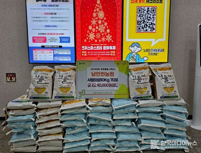 이에 앞서 지난 29일에는 남인천농협(조합장 이태선)이 겨울철 추위와 경제적 어려움으로 이중고를 겪고 있는 소외된 이웃을 돕고, 지역사회 나눔 문화를 확산하기 위해 ‘사랑의 쌀’ 70포(700kg)를 기탁했다.