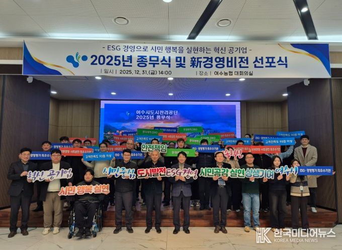 [ 한국미디어뉴스 이종철 기자 ] 여수시도시관리공단은 31일 공단 대회의실에서 ‘新 경영비전 선포식’을 개최하고, 향후 5년간 공단이 나아갈 새로운 경영 철학과 조직 혁신 의지를 대내외에 공식적으로 밝혔다.