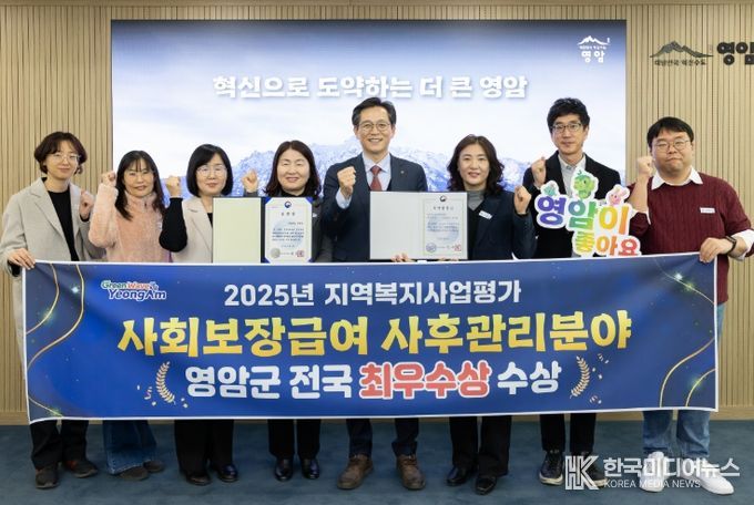 [ 한국미디어뉴스 이종철 기자 ] 영암군이 29일 보건복지부의 ‘2025년 지역복지사업 평가’ 사회보장급여 사후관리 분야 최우수상인 보건복지부장관상을, ‘2025년 사회보장정보시스템 구축 및 운영’ 개인정보 보호 분야에서 보건복지부장관상을 각각 수상해 2관왕에 올랐다.