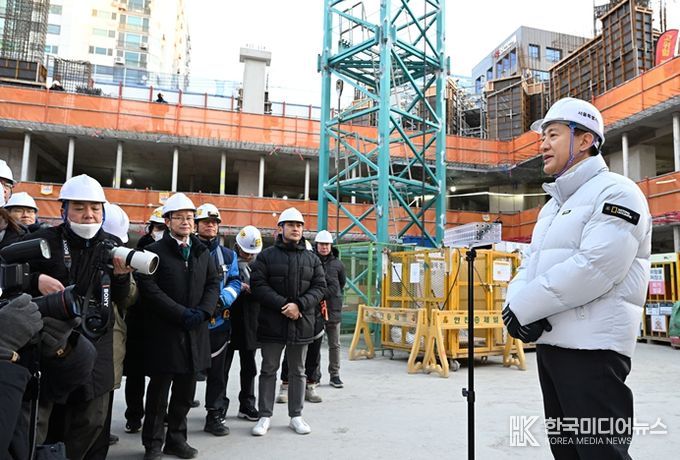 [ 한국미디어뉴스 권경민 기자 ] 오세훈 서울시장은 2일 오전 8시, 2026년 첫 현장으로 영등포구 유원제일1차(영등포구 당산동) 재건축 공사장을 찾아 안전관리 현황을 점검하고, 2031년까지 31만 호 공급 의지를 재차 다졌다.
