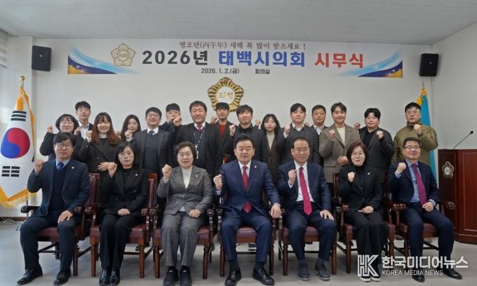 [ 한국미디어뉴스 이원영 기자 ] 태백시의회에서는 2일 2026년 병오년을 맞이하여 시무식을 실시했습다.
