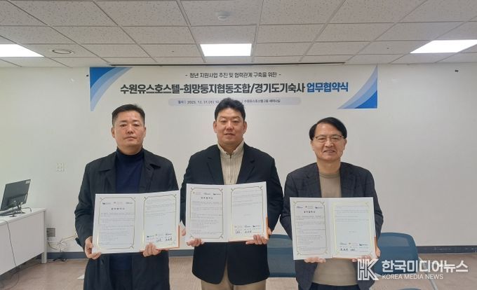 [ 한국미디어뉴스 이보영 기자 ] 수원시청소년청년재단(이사장 최종진) 수원유스호스텔은 지난 2025년 12월 31일 청년 지원사업의 활성화와 상호 협력체계 구축을 위해 업무협약(MOU)를 체결했다.