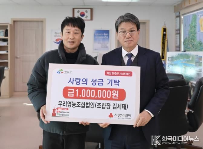 [ 한국미디어뉴스 이원영 기자 ] 청양군은 지난 2일 우리영농조합법인이 ‘희망2026 나눔캠페인’을 통해 성금 100만원을 기탁했다고 밝혔다.