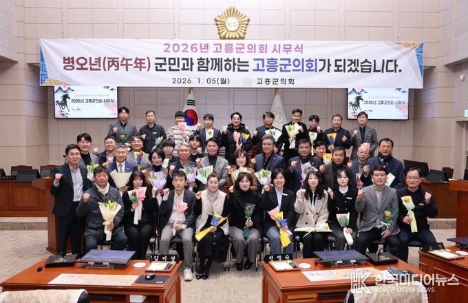 [ 한국미디어뉴스 이종철 기자 ] 고흥군의회는 지난 1월 5일 고흥군의회 본회의장에서 ‘2026년 고흥군의회 시무식’을 열고, 새해 의정활동의 힘찬 출발을 알렸다.