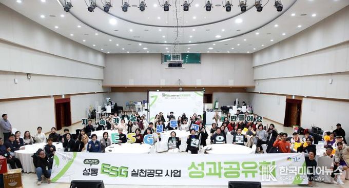 [ 한국미디어뉴스 이원영 기자 ] 서울 성동구는 지난 12월 22일 성동구청 3층 대강당에서 '2025 성동형 ESG 실천 공모사업 성과공유회'를 개최하고 한 해 동안 추진해 온 ESG 실천 공모사업을 성공적으로 마무리했다고 밝혔다.