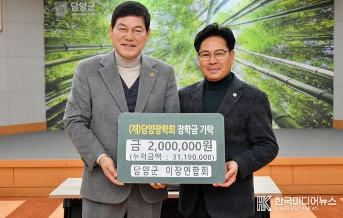 [ 한국미디어뉴스 이종철 기자 ] (재)담양장학회는 지난 6일 담양군 이장연합회(회장 정용오)에서 지역인재 육성을 위한 장학금 200만 원을 기탁했다고 밝혔다.