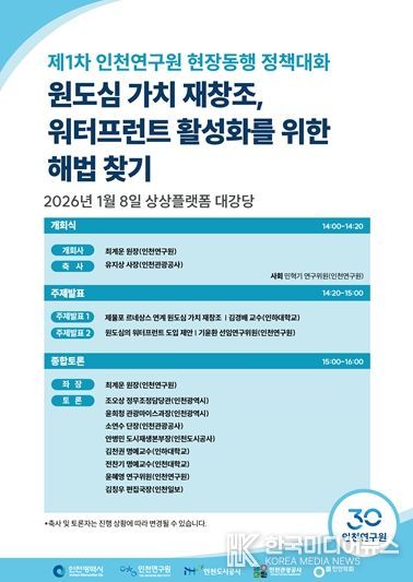 [ 한국미디어뉴스 이원영 기자 ] 인천연구원은 인천학회와 함께 1월 8일 제물포 상상플랫폼에서 정책 세미나를 공동 주최한다.