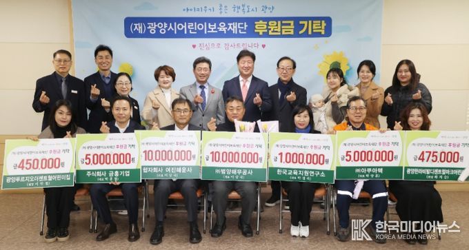 [ 한국미디어뉴스 이종철 기자 ] (재)광양시어린이보육재단은 1월 7일 이광용 이사장, 기탁자 등 관계자 20여 명이 참석한 가운데 후원금 기탁식을 개최했다.