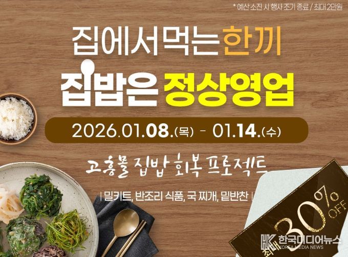[ 한국미디어뉴스 이종철 기자 ] 고흥군이 운영하는 온라인 농수축특산물 쇼핑몰 ‘고흥몰’이 가정 내 식사를 보다 간편하고 실속 있게 즐길 수 있도록 돕기 위해 집밥 중심 기획전을 운영한다.